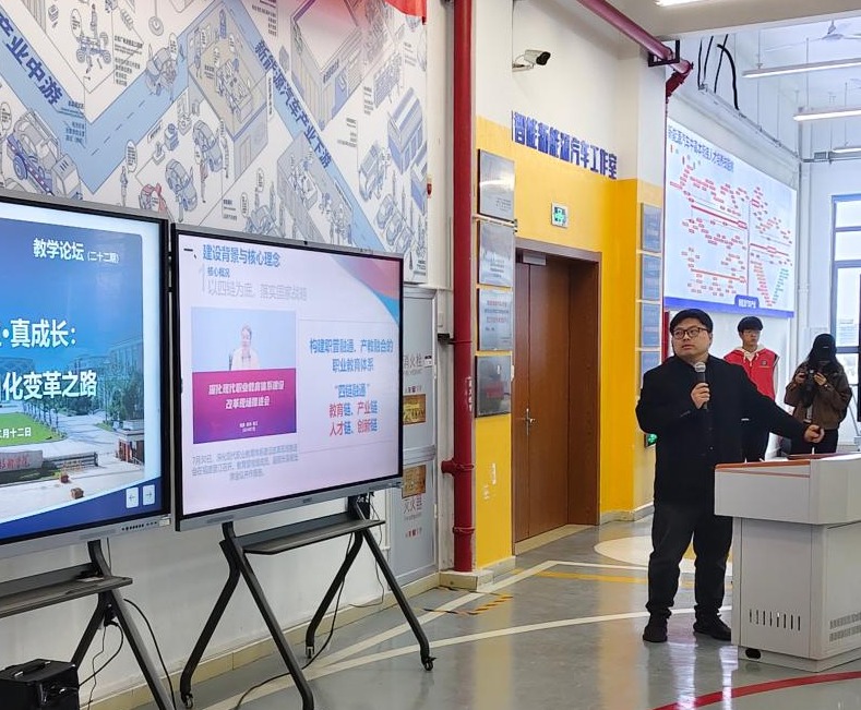 12月12日由教务处主办、光电制造学院承办的学校第22次教学论坛成功举办。本次论坛以“真项目·真岗位·真成长:实训教学的项目化变革之路”为主题,聚焦实训教学改革,展示了光电制造学院在专业群实训体系重构方面的探索与实践。学院以“寻光·追光·聚光·发光”为路径,系统推进实训课程改革,并现场展示三门具有代表性的实训示范课。